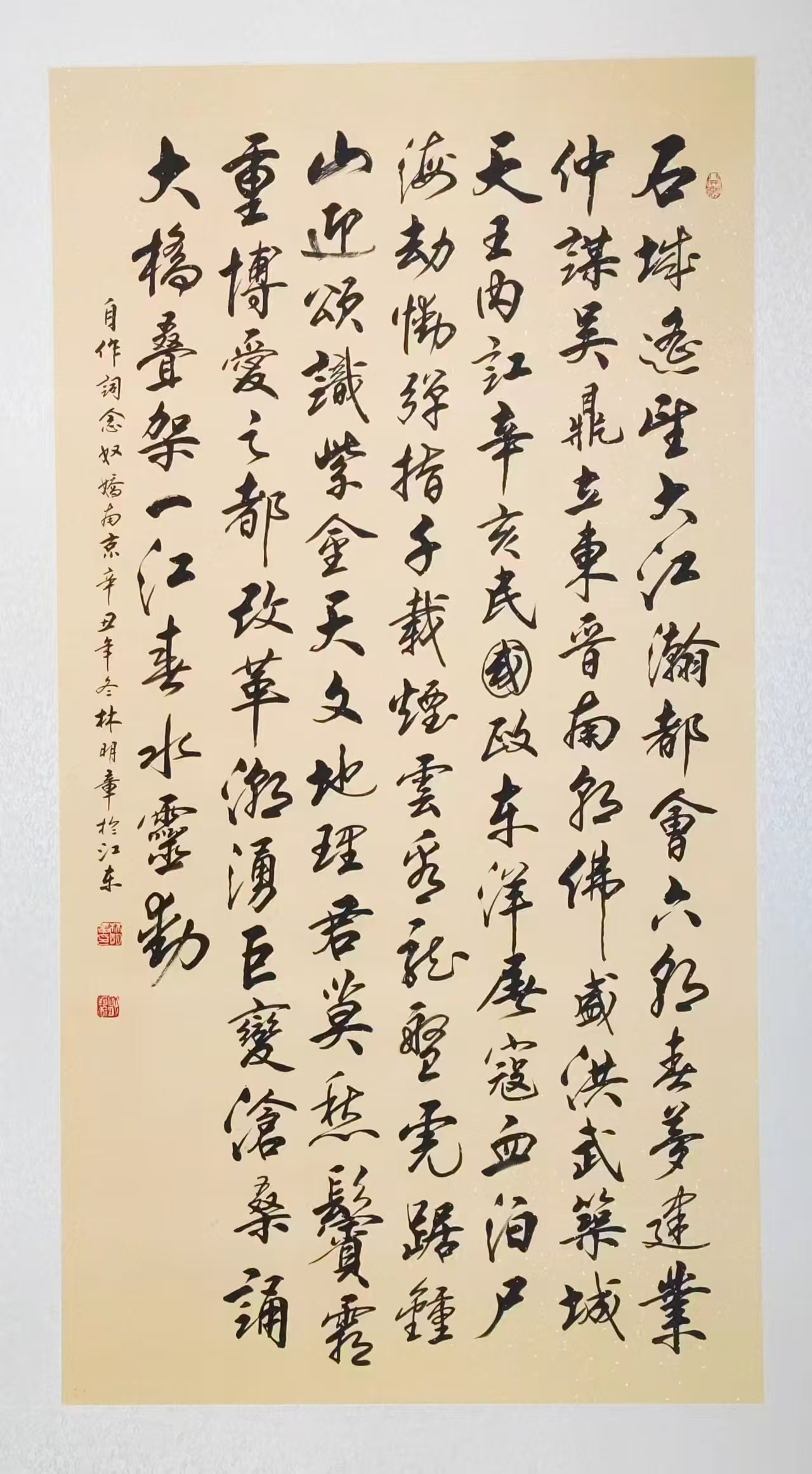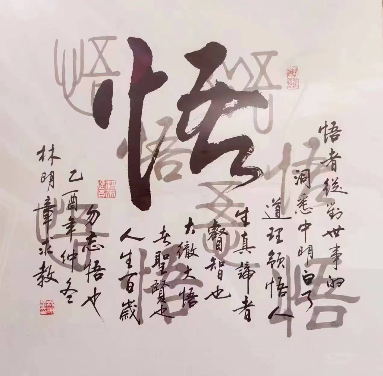 林明章书法作品,分别在庆祝中共十八大、十九大胜利召开 题贺艺术征集活动中 ,两次获金奖并入集。 林明章书法作品曾入展全国首届老年书法大展。曾获中国国学研究会国学杰出贡献奖金奖(孔子金像奖)。